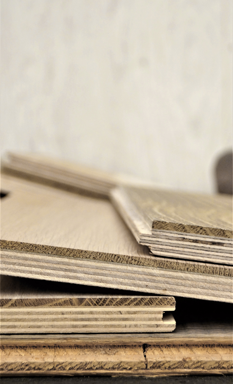 Ξύλινο δάπεδο δρυός εσωτερικού χώρου, ημιμασίφ, με ωφέλιμη επιφάνεια πάχους 3mm & 4mm.